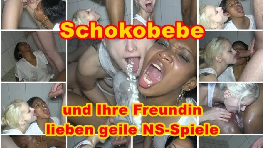 Schokobebe und Mira haben auf einer wilden Party ihre Vorliebe für nasse Spiele entdeckt. Nachdem sie sich gegenseitig in der Dusche angepisst haben, wollten sie mehr. Eine Gruppe Männer hatte das Glück, das Black&White Duo mit goldener Dusche zu verwöhnen. Die T-Shirts klebten an ihren nassen Körpern und Schokobebe präsentierte stolz ihre prallen Titten. Ein Wet-T-Shirt-Contest der besonderen Art. Ein Video voller Piss-Spiele und geiler Aktionen, die jeden NS-Fan begeistern werden.